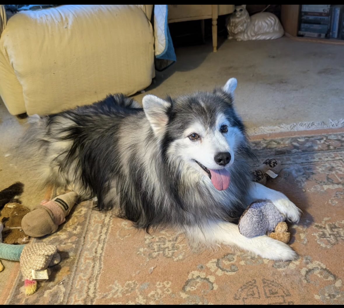 Eskie is a sweet, gentle Husky mix who is in need of a new forever home after his owner unexpectedly passed away. At approximately 5 years old, Eskie has a calm, affectionate nature and does well with both dogs and cats, making him a wonderful candidate for a multi-pet household.