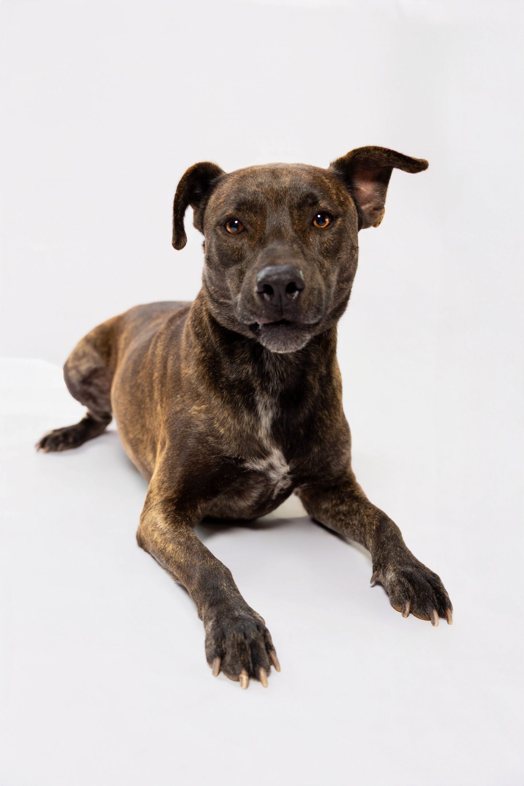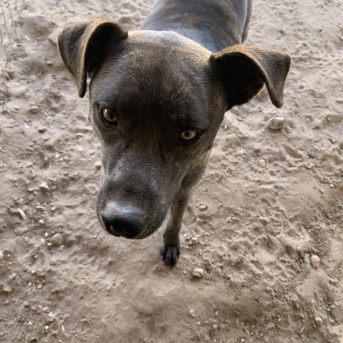 Meet Fortune, a handsome brindle Pitbull mix with a gentle soul and a calm, easygoing personality. At approximately 2.5 years old, Fortune came to Yaqui Ranch alongside his sibling after being rescued from an abandoned home — a difficult start that hasn’t dimmed his sweet nature.